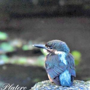 翡翠さんのヒナ 夕暮れ時の 川沿いにて