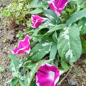 ツルなしアサガオ。 だいぶ遅くにタネ撒いたから…今頃咲き出した☺️