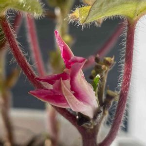 零れ種組 斑入りの葉とうっすらと白の覆輪も好き ツルがなくてお世話要らずだけど 葉の勢いが良くてお花が隠れがち🤣 💕 そっと葉を下げて撮ってみた〜(。˃ ᵕ ˂。)