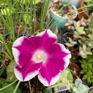 つるなし朝顔が咲いてるところ、やっと見れた✨ 幸せな気持ちになりました🌸