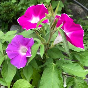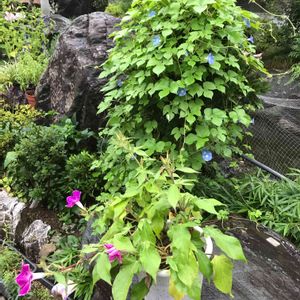 ♥️♪♪(*´∀`*人*´∀`*)♪♪💗 つるなし朝顔 雑草防止にあっちこっち植えてます🤣