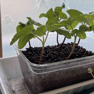 ハイドロボールでつるなし朝顔を育てています! おばあちゃんに種を貰いました! 6/3の様子です!