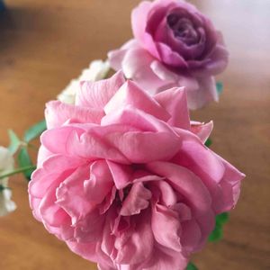 牡丹 八千代椿 満開です。 咲き進むにつれてどんどん鮮やかなピンクになりました。 開花時に複雑だった香りも咲き進むにつれて純粋ないい香り(トーンの高いツーンとした香り)に変わりました。 若い株なので三番花以降は摘蕾することに。切って水あげを始めると一瞬で開花しました🌸またもや不意打ちの開花。 色々と驚かされっぱなしです。 摘蕾後、本体の切り口に癒合剤を塗りました。癒合剤の使用も初めてでドキドキでした。