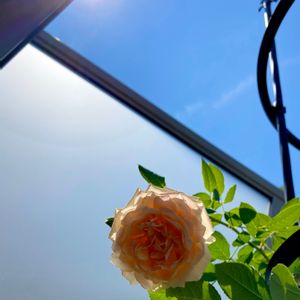 摘蕾を免れたイングリッシュローズ ジェーン・オースティン 逆光で見えにくい俯いて咲くバラ 真夏は咲かせないようにと摘蕾していて 先週見かけた花芽を積み忘れたらしく 大きな花を咲かせていた 小輪の四季咲きバラは摘蕾せず放置していたけど 中〜大輪は秋に向け全ての花芽を取って エネルギーを使わせないようコントロール 施肥ができない夏場は花を咲かせると株が弱りやすい 咲いた花もカットして部屋で楽しもうかな 今ついてる花芽ももう一度カットしないとね
