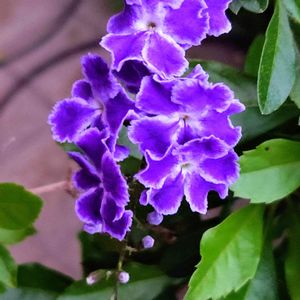 デュランタ タカラズカ 冬越一番花😀ひと回り大きな鉢に植え替えて 葉っぱも元気です かなり成長しました🥰今 雨はやんでますが 風がけっこうあります 皆様 お大事にしてくださいね😌