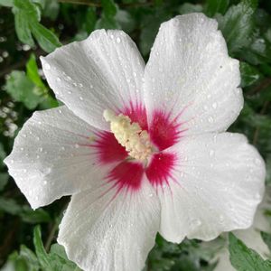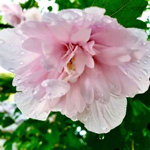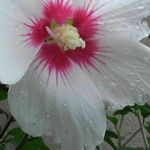 出勤途中 道の傍らに 雨に打たれて☔️ そっと咲いていた木槿 厳しい自然の仕打ちにも 負けないで 首をもたげて咲く その美しい姿に暫し感動✨ あなたのその強さが、素敵❣️