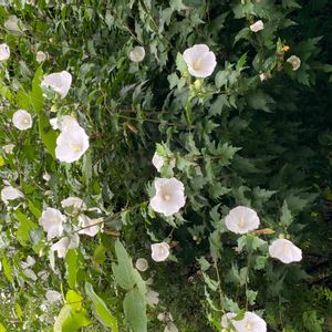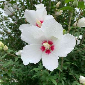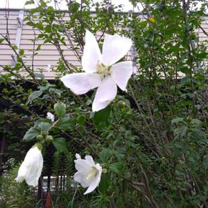 ムクゲ?ハイビスカス?芙蓉?見分け方がよく分かりません。。木に幾つも花を付けていて、爽やかな白と濃い緑色のコントラストが綺麗でした。