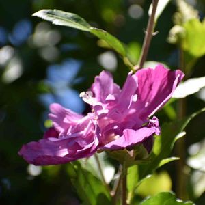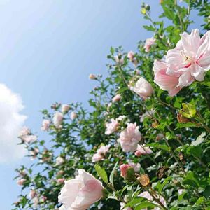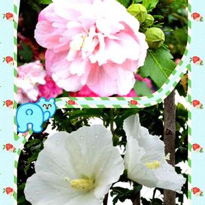 出掛け先で八重咲きのムクゲ と白いムクゲの花が咲いていました。 ムクゲ(木槿) 別名:ハチス、キハチなどと言うみたいですね ムクゲは中国や東アジアを原産とする落葉低木です 日本では江戸時代から多くの品種が作られていました。 花は一重咲き 八重咲き 半八重咲き の花があります 色は白、ピンク、紅紫、水色などの花を咲かせます ムクゲの花の由来は 中国名の木槿(ムージン) 漢名の木槿(モクキン)が変化してムクゲと称されました 韓国名では無窮花(ムキュウゲ)が変化しムクゲと称されました 因みに韓国では国の繁栄を意味する花として 国花とされています❗️ このムクゲの花は 夏~秋にかけて咲いているようなイメージですが 実は1日花 つまり、一輪一輪は 1日で散り 次々に開花するため木 全体としての花期が長いのですね このムクゲの花言葉は 信念 新しい美 ムクゲの花が次々に咲く事から新しい美と言う花言葉が由来しているみたいですね