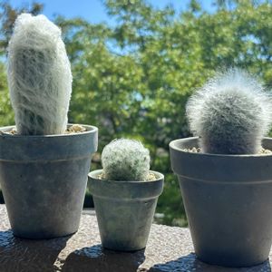 我が家のサボテンたち🌵 バニーカクタス🌵 鉢と同じポーズでいつも楽しそうな二人組😆🌵🌵✨ 満月🌵 大きくてまあるいサボテンさん🌵 テフロカクタス武蔵野🌵 節が増えて上に伸びていきます♪ ペラペラの紙のようなトゲがカッコいいサボテン😎✨体表面には痛いトゲもあります😣 幻楽🌵 ずっと前からこの大きさ💧他の方の投稿を見ると伸びていて、違う品種か⭐️になってるのかと心配になりました🫤モフモフでわかりにくいです、買った時に付いていたタグは鉛筆手書きでした🤔