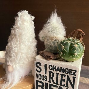 これ なーんだ? 白くて ふわふわ もっふもふ𓂃 𓈒𓏸 𓋜 . * ずっと触ってたい(*≧艸≦) 答えは② ね❣️ 鉢とのバランスが悪くて 倒れそうだったから 鉢まし したけど それでも なんだかなぁ 安定感 微妙だわ^^; あ、そうそう うちの🌵先住サボじぃより ふっさふさなんだ〜ꉂ(ˊᗜˋ*)