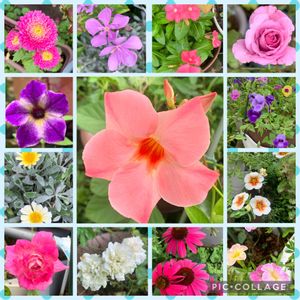 ウチ🏠の小さな庭から こちら日中はまだまだ暑くて💦、夏のお花がまだ元気に咲いています❣️ ①今日は昼までの勤務で、ホムセンパトロールして帰宅したら、昼間にしか見る事が出来ない『虹色ポーチュラカ』が玄関前でモリモリ咲いていました🩷💛🤍🧡💚 その中で私の好きな原種ハイビスカス『ロバツス』🩷が枝を伸ばして私も写して‼︎と言わんばかりに主張してました🫶💕 ②コリウス💚🤎❤️と夏のお花達がお互いに引き立て合っています。 イソトマ🤍は真夏には枯れたかな?と思える程グッタリしてましたが、ココへ来て元気を取り戻し、まるで白い蝶🤍が沢山舞ってるよう💓 ③お花達🩷🤍❤️だいぶ花付きは悪くなってはきましたが、頑張って咲いてくれています。 ④西側の道路側に置いている寄せ植え。黄色いマリーゴールド💛は最後の一輪かなぁ🤔? 銅葉のダリアは最近になって生き返ったような?…でも花が咲いた事が無い…💦ホントは深い赤の大人っぽいダリアが❤️🖤が咲くはずなんだけどなぁ🤔💕 向こう側の赤い千日紅❤️はまるでイチゴ🍓のような可愛さ😋💕で、いい感じにコラボしていました👍✨ ⑤東側の寄せ植えには八重咲きニチニチソウの『サニープリンセス』🩷が咲いています。やはり真夏のキツい暑さは苦手だったようで、今頃になってよく咲いてくれるようになりました😊💕 ホームセンターに寄ってみましたが、パンビオ達が少しずつ入荷していました。季節は春に向けてのお花達が徐々に増えていくのでしょうが、こちら昼間はまだまだ暑くて、植え替えもなかなかやる気になれません😓⤵️ しかも日暮れが早くなり、ヒンヤリしてきた頃には真っ暗⤵️💦 …まぁ無理せず、体調と相談しながらマイペースにボチボチやっていきます😊✨