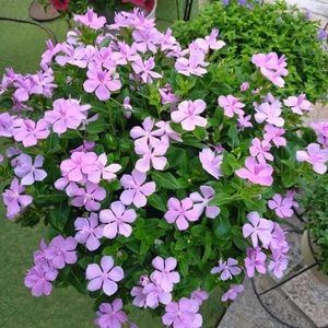 こんにちは☀ サントリーフラワーズのニチニチソウ。 サニープリンセスのブルー🎵 ピンクっぽいけどブルーです🤭 真夏も元気に咲き続け、最近気温が少し下がったはせいか花数も増えてきました😊 まだまだ楽しめそうです🎵