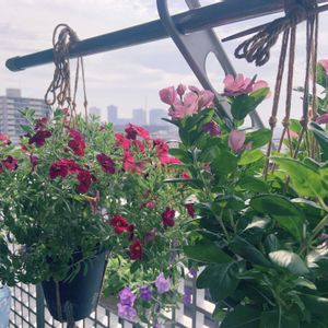 サントリーフラワーズ サニープリンセス ピンク/ ホワイト 昨年サニプリちゃんをボリュームよく育てる事ができず 今年はボリュームを出す為に3苗一緒に植え付けました(画像❷) 自由奔放に育っていたサニプリちゃんを1ヶ月前に切り戻し なんとかボリュームは出す事はできました