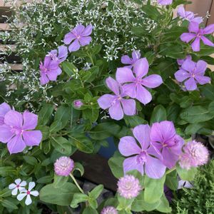 サントリーの ニチニチソウとサンパラソル❗️ サンパラソルは2年目。 サニープリンセス。 暑さに負けず咲いています。 ╰(*´︶`*)╯♡