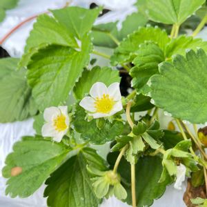 綺麗な白花💕 朝からミツバチ🐝さんの代わりに人工花粉付けをいています ☆*:.。. o(≧▽≦)o .。.:*☆ 仕事の途中で 食べるいちご🍓は 最高です (((o(*゚▽゚*)o)))♡