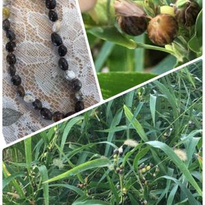 朝ウォーキングの時、田んぼの空き地で見つけた「ジュズダマ」🌿 幼い頃を思い出してブレスレット作ってみました(^^)