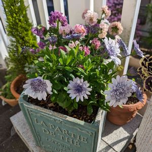 おはようございます☀ 今日の一枚は寄せ植えです📷 アリッサム 斑入り金魚草フォレストマリアージュ オステオスペルマム(ワインレッド、おやすみ中💤) 金魚草は株が立派だったという理由で初めてお迎えしました✨ 去年は育ててみたいという好奇心から、多少ぐらついた株でもいいやーとあれこれ買ったのですが、結局苗選びで一番大事なのは株のしっかりさだったなーと実感😌