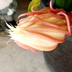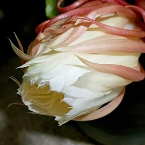 夢のような感動の一夜でした♥ 夜7時頃から少しずつ少しずつ開き始め 9時頃には満開に♥ 憧れの月下美人の開花の瞬間を初めて見ることが出来 幸せでした♥ 甘い香りが漂い 感激でそばを離れられない貴重な一晩に感謝です。 後ろ姿 今朝のお疲れ様の月下美人も魅力的です🍀