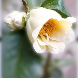 ツバキ 🤍🤍🤍🤍🤍🤍🤍🤍🤍🤍 💚💚💚💚💚💚💚💚💚💚 大塚にある角海老ボクシングジム前に咲いてました。 これ以上は開花しないようです。🤍💚