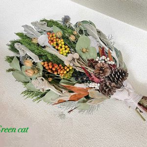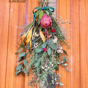 庭のヒバやユーカリを伐採したのでクリスマススワッグを作りました あとは家にあった花材でなんとか出来た❁⃘*.゚