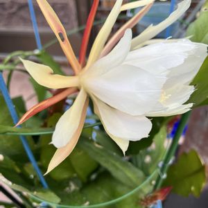 おはようございます٩(๑❛ᴗ❛๑)۶ 葉挿しして3年目で 白色の孔雀サボテン🌵の花が咲いていました やっと会えた😭💦💕 とても綺麗です ˚✧₊⁎❝᷀ົཽ≀ˍ̮ ❝᷀ົཽ⁎⁺˳✧༚
