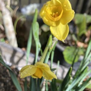 おはようございます 我が家の花達 エッグタルト 元気に咲いています 水仙 香りがします 小さな庭 🏷️心はメローイエロー