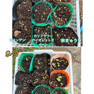 こんばんはᙚᵐⁱᒻᵉ¨̮♡ 台風🌀の影響で久しぶりに一日降ったり止んだりの一日でした☔️ 今日は種まきしたのを軒下に避難させて、買った苗を本降りになる前に 植え付けました。 ①先週日曜日に蒔いた野菜の種たち 一日でさらに変化が見られてとっても嬉しい☺️🌱最近、種まきしても失敗ばっかりだったので、ちょっと自信が出てきました😄 ②落花生(自家採種)も見た目は順調です。果たして今年は食べられるだけ収穫できるのか〜🤔 ③落花生の右下に見切りっ子のズッキーニを植えてます。 ズッキーニ、難しそうなので植えるのをためらってましたが、見切り苗に出会えたので植えてみました。 もう少し大きくな〜れ💪💚 ④残渣置き場にたくさん生えていたので、モロヘイヤかと思ってずっと水やり💦してましたが、何か様子がおかしいので調べてみたらエノキグサ、と出ました😅 食べなくて良かったです!(有毒らしいです) ⑤雨が降る前に芽キャベツの苗を植えました。 いつも行く種苗園はまだこの時期芽キャベツの苗を置いてなくて、仕方なく別のHCで購入。本当は芽キャベツはなるべく8月中に植えたかった。種まきっ子も苗ができたら比較したいので、植えてみたいと思います。 芽キャベツを植えるために、トマト🍅の跡に牛ふん、鶏ふん、苦土石灰を入れて耕しましたが土と言うよりは砂に近いなぁと改めて思いました。 もともと何も無い所にキッチンガーデンを作ったので、こんなものなのかもしれません。できたらもうちょっと肥沃な土にしていきたいです。 皆さんも良い週末をお過ごしください😊💚