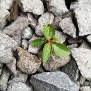 この大きな葉っぱの子はなんでしょう?ヒメイワダレソウと砂利の中から勝手にはえてきました。