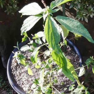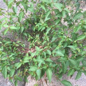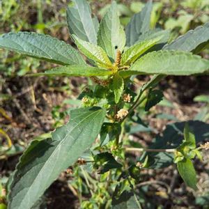 エノキグサ もう一枚、先に投稿したのも同じエノキグサでした💦 トウダイグサ科の草本で、普通に見られる雑草である。葉はエノキに似て、花序の基部に雌花を包んで編み笠様の苞葉があるのが特徴。 別名「アミガサソウ」は、雌花の基部にある総苞を編笠に例えたもの。 雄花は下の総苞の中にころげ落ちて直接受粉する👈この記述…オモシロイ🤣 じゃあ、テッペンについてるのは、雌花かと思ったけど❓受粉できるの❓