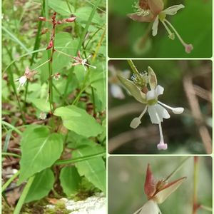 タニタデ(谷蓼) *アカバナ科ミズタマソウ属 花期は7〜9月 北海道〜九州の山地の渓流沿いなどの湿った場所に生育する多年草! 高さは20〜50cm 葉は対生し紅色を帯びた葉柄があり、長楕円〜卵形で先は尖る! 茎は節を中心に紅紫色でほぼ無毛! 茎先と葉腋から総状花序を出し白から淡紅色の花を下向きに付ける。 花弁は2個、雄しべ2個、柱頭は2裂、紅紫色を帯びた萼列片が2個! 良く似たミズタマソウは 花柄や茎は有毛! 花弁の先が明瞭に2裂けする! 節のみが赤みを帯びる! とても小さな花でしたが、ハッとする美しさを感じました❣️ 8月28日撮影 岩手県一ノ関市