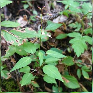 タニタデ アカバナ科ミズタマソウ属 山地の林下に生える 土阿県境歩き 🔚ー1️⃣ タニタデorミヤマタニタデ 迷った。 草丈15cm位 ミヤマか? 花友さんは🦌が食べた後の2番芽では。 シャッターボタンを何回も。