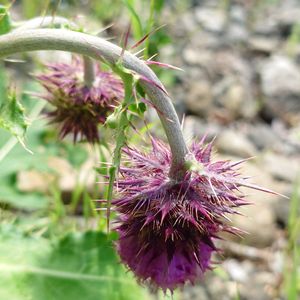 こんにちは😊 フジアザミ 奥多摩のフジアザミです。 紅紫の色がとても綺麗でした😍 カラカラのお天気の中逞しく咲いていました。 元々、砂礫地が好きなお花だからでしょうか…