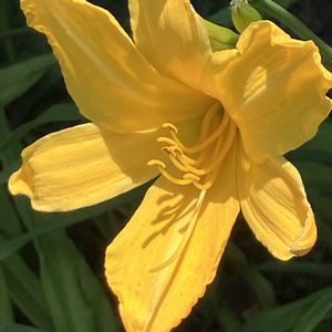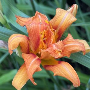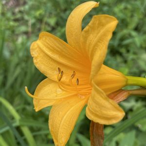 おはようございます😃 30度を越す暑さもたまりませんが、小雨模様の曇り空が続くと滅入ります。 ワスレグサ属の花です。 群馬県の田舎育ちの私は、草原の花ユウスゲやキスゲの花が好きです。 畑や田んぼの畦に咲くノカンゾウもそれらに似て好きでした。 刈谷では一重のノカンゾウは見ることがありません。 八重咲きのヤブカンゾウばかりです。 この花は一重です。 ノカンゾウに似ていますが、葉っぱが長くて垂れています。 しかも、5月末にはノカンゾウはまだ咲かないでしょう。 ヘメロカリスと呼ばれる園芸種でしょう。🤔 しかし、ノカンゾウに似た花は懐かしく嬉しい出会いです。😘