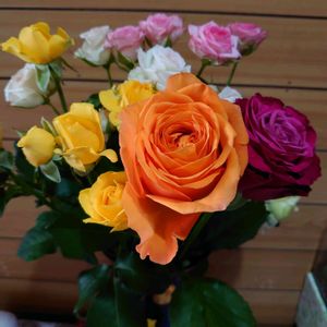 写真1枚目 早速、快気祝いで駆けつけてくれた母の知人からいただいた薔薇さん達。 ビタミンカラーで元気が出ます。 良かった!母の好きな黄薔薇がある。 今年はまだ黄薔薇を渡せていなかったので…。 写真2枚目 昨日の八重のユリとデルフィニウム、実家の庭に咲いていた薔薇さん達にミヤコワスレとただ今、玄関にお花が凄いことになっています。 写真3枚目 そして、お見舞いでいただいた果物もいっぱい。 旬のものを少しずつ、少しずついただきます。 ダークチェリーに西瓜ももう出回っているのねぇ。 2024.5.16