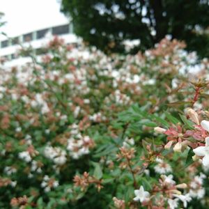 " アベリヤ " スイカズラ属 常緑低木 満開に咲くと~ 周辺が甘い香り に包まれ 癒されます🤗