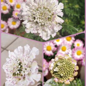 こんばんは😃🌃 汗ばむ一日でした~😆 夏が長くなりそう😆 スカビオサ アメジストスノーが一輪開きました~🎶 とっても可愛いです💗💗 他の花達も元気に咲いています✨☀️✨