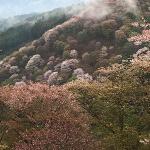 奈良 吉野山の桜🌸です。 月曜日は、曇り小雨でしたから、こんな感じでした。 今日から、また、日常生活、元気出していきまましょう😊😉