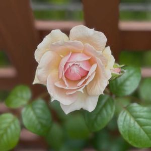 ルクソール✨今年新苗でお迎え 摘芯していましたが膨らんだ蕾を一つだけ咲かせてみました😙 茶系のバラですがピンクベージュ寄りのお花が咲きました♪可愛いです🙆🏻♀️6月8日に撮影✨