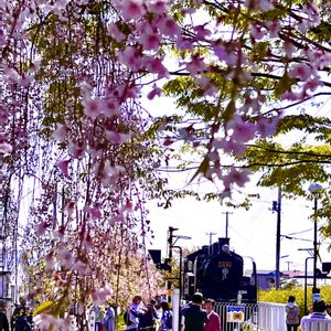 ♬枝垂れ桜✲•*¨*•.¸¸♪ 『日中線しだれ桜並木』にて…。 福島県喜多方市の「日中線し だれ桜並木」を歩いてきまし た。 (2024年4月20日撮影) 昭和59年に廃線となった日中線の跡地の一部を遊歩道として整備したもので、喜多方駅の西徒歩5分にある遊歩道入口から全長3kmにわたって約1,000本のしだれ桜が植栽されており、日本最大級のしだれ桜並木が楽しめます。 また、道のり中間点付近には、当時走っていたSLが展示されています。