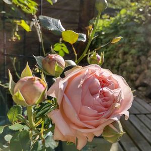 こんにちは😃 皆さん日曜日の午後どうお過ごしでしょうか?😊行き交う車も増え、行楽に出かける人々の賑わいを感じますね  この辺りはいつも静かなのに😚 こちら もう結構初夏ほどです〜😆 この前雪⛄降ってませんでした? 慌てて🌹薔薇の余分な枝や、蕾の処理に追われました💦すぐ咲きますのでね こう暑いと💦 疲れたんで、写真撮って遊んでます 今よりもかなり薔薇🌹初心者だった頃、ホームセンター購入の苗を植えたのがきっかけで、現在やっと10株ほどに。 そのきっかけの薔薇が こちら①枚目 ②枚目 フレンチレース ごく普通に手に入る品種ですが、とても育てやすく、何しろ一番花の美しいこと😍 そのために頑張ります😁 自分にプレッシャーかけてます😤 薔薇について増やすつもりはないのですが−−多いんでしょうか 分からなくなりました😰③枚目 植物好きな人と話すと、ジャングルだっなって、ご自分の子供に言われるほど、集めてらっしゃる方も見えますね!(^o^ 私の場合、🌿全部草だと言われてます😢 ジャングルみたいと言われる訳は、熱帯のイメージを彷彿する姿形があるからでしょうね🤔南国の鳥や🦩なんかのオブジェ?を枝に引っ掛けたりしますでしょう。 深い意味はないのでしょうが--うちの子も、それはそれは-- 1番気にしたいところは、自分が楽しくなる時間になった事 だけどうち狭いっよ 日曜日なのにお仕事なんて方もおら れるでしょう😰お疲れ様です 私も、若い時は仕事ばっかでした~今もですが−− 心癒される為の活動ですので!🤣 ④枚目は 水生植物達です 蚊の対策でメダカちゃん入れました🤩 睡蓮 蓮の花  睡蓮は ヒメスイレン もう一つは名無しちゃんです ハスは まだ一回も咲いておりませんね😰 2年目なので、栄養蓄え中でしょうか🤔今年は見れるでしょうか? 楽しみです✨