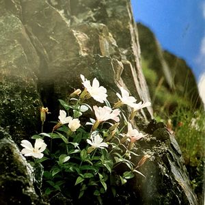 撮影日2022/7/09〜7/10 南アルプス鳳凰三山 青木鉱泉-ドンドコ沢-鳳凰小屋-地蔵岳-観音岳-薬師岳-青木鉱泉 タカネビランジ 高嶺ビランジ ナデシコ科 マンテマ属 高山の岩壁や岩隙に生える 日本固有 花色は鳳凰三山は赤が濃い