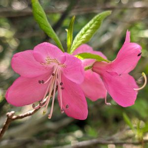 おはようございます〜 冷たい雨です☂️ 先日公園散歩で出会ったお花 ムラサキヤシオツツジと思います ピンクで可愛いお花です。