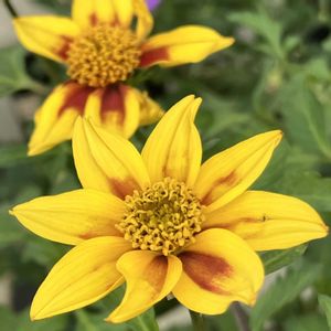 ウィンターコスモスとも呼ばれ赤オレンジ色と黄色からなる鮮やかなバイカラーの花が咲くビデンス ブレイジングスター