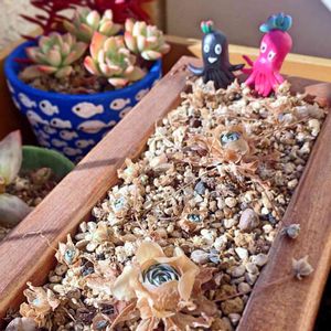 多肉の知識もあまりない冬に、購入したカット苗のセットの中にカリカリになって丸まった小さな苗があって驚いたのを思い出します。 そんな私も多肉育ててまもなく1年。もう焦りませんよ☺️ 子持ちさん、ゆっくり冬眠してくださいね〜