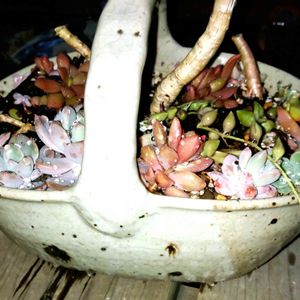 多肉植物の切り戻し作業。 一応完了です。 写真の、素敵なバスケットタイプの焼き物鉢は、母のお友達からの譲り受けです✨ 多肉好きの証にと、彼女自慢の多肉さん盛り合わせコラボにて頂戴いたしました✨ ただ、反省するべき点が-- この盛り合わせ中、冬越しができたのは、ほんのわずか😱 差し詰めましては、切り戻し作業と相成り、ご覧の通りの無惨😣な、お姿〜ごめんなさい💦母のお友達🥹 私の多肉枯らさないでよ!と、洗礼品を手にしたからには、ちゃんとお世話いたしますっ(^o^; 多肉栽培オーナーさんを知るなか、この方もすんごい集めてらっしゃる方で、アァァ上には上が~と思ったものです😅 今の、植物に満たされた時を過ごせるのは、貴方のおかげ✨感謝⤴️多肉友!