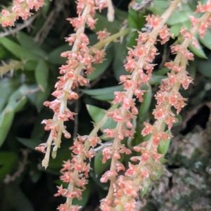 スダジイ ブナ科 シイ属 ヨウラクラン ラン科 ヨウラクラン属 家の近くの神社の巨木スダジイです。 沢山のお花を付けていて地面にはスダジイの花が落ちています。 この神社のスダジイにはヨウラクランが数箇所で着生していて今が花の見頃です。 目線の高さで見られるヨウラクランはコレだけで他は高い所で着生しています。 世界最小のラン ヨウラクランの学名はOberonia japonica(Maxim)Makino 牧野富太郎氏の名前が付けられています。 🏷目に青葉〜2024 スダジイで2枚目 参加させていただきます。