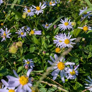 こんにちは😊 お久しぶりです🌿 今日のお花ノコンギク💜 キク科シオン属の多年草🌿 別名-ホソバコンギク ①舌状花は淡青紫色💜 花柱の先は2分岐し扁平で 先端が三角形🔼 内側に向かい合って曲がり雄しべ5個は合着して筒状になり下部は鈍形🌿💜🌿 ②総萼片はワイングラス型 ③9月の1番花🌿💜🌿 薄紫の花弁で卵型の小さい葉っぱで触るとザラザラしてるのが野紺菊💜 ④10月には見事に咲き揃います💜 🏷️癒しの薄紫 🏷️山野草マニア ①②都内の出先で💜 ③④いつもの散歩道で🌅 ①②2025.10.2 ③2025.9.29 ④2023.10.3