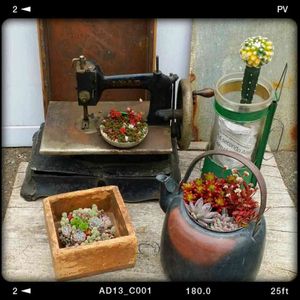 『古い道具(糸巻き立て?)✕多肉とセダム』〜看板代わりの寄せ植え〜 私は整った多肉やサボテンの苗も好きは好きですが、どちらかと言うと年月を経て木化して踊ったような自然な形の苗が好きなので、今回はそんな苗を使って寄せてみました(^-^) 古い道具も年月経てるからぴったしでしょ? 古い道具をその辺に転がしてたら、いつの間にか多肉が寄生したような、、?いや、、小さな森を作った様なイメージで作りました。 小さな森は森ですが、この土台結構大きいですよ。30✕30cmぐらいかな?? この寄せ植えにtot-ziensの鉄の文字をつけて、、お店が開店したらビルの前に置いておきますね♪ また、6月ぐらいにこんな感じの寄せ植え作るWSやってみようかなと思ってます(^-^)