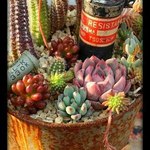 『工場から出てきた鉄の入れ物×多肉とセダムとサボテンと、、』 おはようございます(^-^) picは昨日発送した寄せ植えです。 ぽかぽか天気の雰囲気ですが、、 只今、神戸は雪です*.❄*⛄ 小さな雪がずっと降ってて、どんどん積もってます。 明日からの実店舗営業日の植物事情ですが、、 寒波の影響で、生産者さんの方も育成が遅れていて、今週2箇所から入荷予定だった分が入って来ていません。 先週もめちゃくちゃ沢山の苗が旅立って行ったので、同じペースで旅立って行くと 少し心細いかもしれません( ˘ •ω• ˘ ) ま〜ストックはあるにはありますし、お店の中満タンで無くても、好きな品種はそれぞれ違うので、お気に入りはあるかと思います(^-^) あっ、一応 土曜日着でPOT苗が100程届く予定ですが、、雪の影響でちゃんと着くかがわかりません。 入荷どうなったかは、またTwitter等でお知らせしますね(^-^) 紅葉多肉の抜き苗は、今週も沢山入荷しますので楽しみにしていて下さいね✩