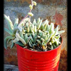 『ブリキ×多肉とセダム〜おまかせ〜』 こんにちは(^-^)只今、神戸は晴れです☀️結構風が強いですね。 本日のpicは おまかせの寄せ植えです♪ イードンスノーをメインに寄せました。後ろの紅稚児はコンペイトウみたいな可愛い花が咲きます。 今蕾なので 、届いてしばらくして咲くと 嬉しい気分になって下さるかな〜と思ってます*・゚ .゚・*. あと、鉄の入れ物の寄せ植え作ったら 一緒に発送しま〜す❄